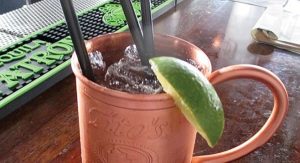 “The Heisman is going to be spicy and when you taste it, thanks to the copper mug, it’s going to be really cold,” says the bar’s owner. “The copper mug with the ice is designed to get that chill to hit you instantly. Once you take that first drink, you’re going to feel a sharp but pleasant cold come over your mouth. There’s going to be a slight lime taste with a hint of the bitters, the Angostura bitters, and that back end is going to hit the middle of your palate with carbonation, ginger, and citrus. Then you’re going to taste that spice toward the back end of the drink with an enjoyable aftertaste.”