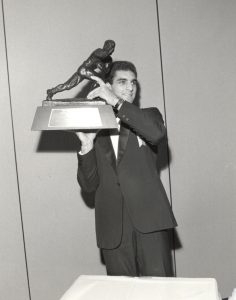 His senior year was a magical one. Testaverde threw for 2,557 yards and 26 touchdowns (while also adding four rushing scores) as Miami finished the regular season 11-0 and ranked No. 1 in the country. Testaverde won the Heisman in a landslide over Temple’s Paul Palmer.