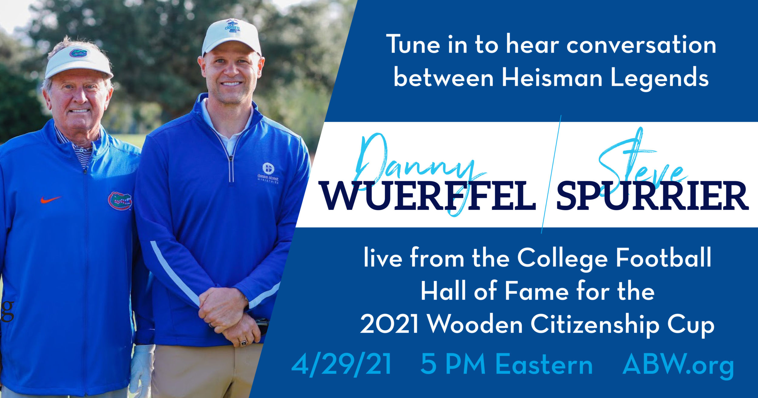 Additionally, Coach Spurrier and Wuerffel will be interviewed together before the ceremony at 5 pm ET in a pre-event reception, which will be live-streamed free online here.